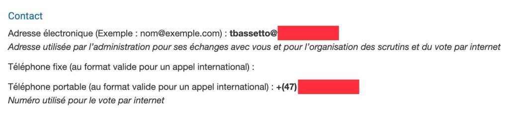 C’est sur cette page que vous pourrez consulter et modifier vos coordonnées pour le vote en ligne :